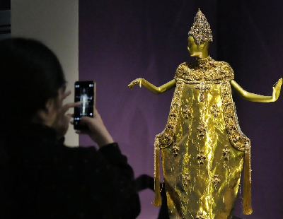 创刊65周年之际,光明日报总编辑何东平及报社编委会为胡愈之、杨西光两位报社前辈的铜像揭幕,并代表报社向创刊时期参与报社工作的老同志颁发纪念章。(王树平摄/光明图片)