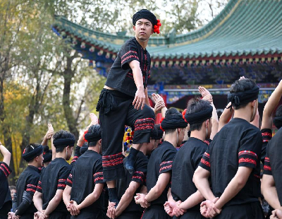 北京市东城区区委常委汤钦飞(中)、共青团东城区委书记于家明(左二)、崇外街道工委书记张伟(左四)